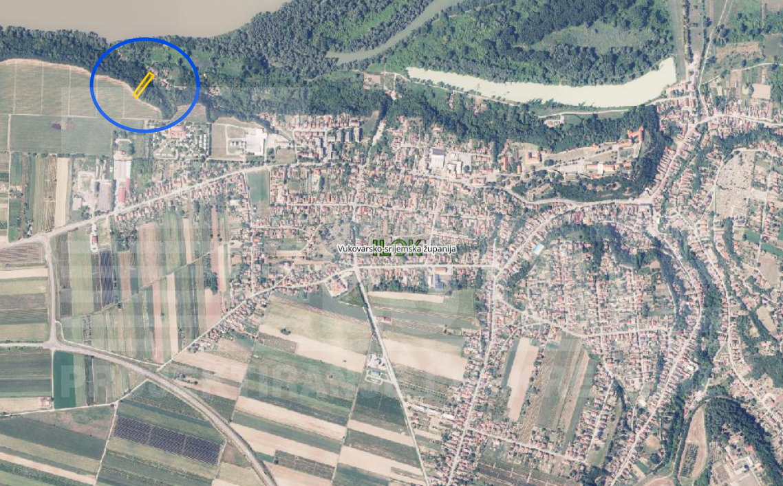 Pozicionirano svojim uličnim dijelom u građevinsku zonu (mogućnost gradnje vikendice, obiteljsek kuće i sl.), a stražnjim dijelom u poljoprivrednu zonu. U neposrednoj blizini Doma za satarije, Iločkih podruma, udaljena svega 150 metara od Dunava. Mirno susjedstvo obiteljskih kuća i kuća za odmor.